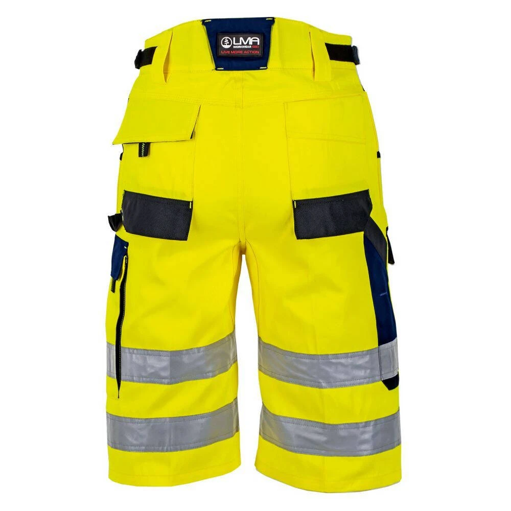 Ce Bermuda de travail multipoches haute visibilité LMA bougie est idéal pour travailler confortablement en été avec une haute visibilité. Ce bermuda est un modèle résistant renforcé en Oxford 900D et confortable grâce à son tissu coton majoritaire.
