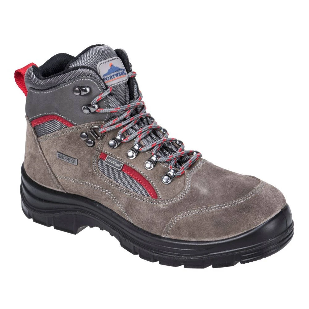 Pour l’extérieur. Chaussure de sécurité Brodequin Steelite Portwest Hicker S3 résistant à l’humidité avec une doublure respirante. Version économique de la FW57, le cuir velours est moins solide quand il est mouillé.