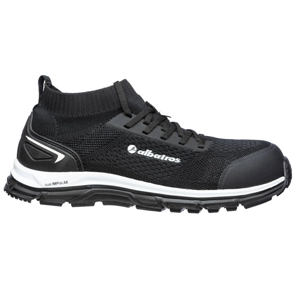 Les chaussures de sécurité Albatros ULTIMATE IMPULSE BLACK LOW S1P ESD HRO SRA possèdent un embout en fibre de verre léger ainsi qu’une semelle anti-perforation FAP souple. Ces chaussures sans parties métalliques sont en outre équipées d’une doublure respirable, vous garantissant un grand confort en condition de travail. La semelle en caoutchouc antidérapante résiste à une chaleur allant jusqu’à 300°C. L’inter-semelle IMPULSE.FOAM ® en deux différentes densités vous garantit un excellent amortissement, une grande stabilité et un excellent confort. Une parfaite adhésion au sol est assurée par les rainures de flexion qui assurent également une grande souplesse de la semelle.