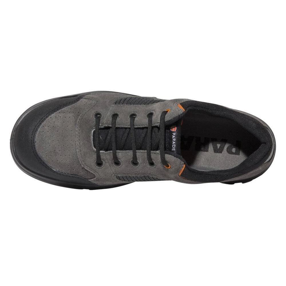 Les chaussures de sécurité basses Parade TILKA S1P SRC allient légèreté, solidité et confort pour accomplir diverses tâches au travail. Conçues en tige de croûte de cuir de velours avec un design accentué, elles sont parfaitement imperméables et résistent à toutes pénétrations de particules grâce à un laçage court étanche. Doublée de textile respirant, l’aération interne est optimale permettant de rester au sec. Une démarche confortable est optimisée par une meilleure posture des pieds grâce à la semelle de propreté ergonomique. Une structure combinant un maintien de l’arc plantaire VPS pour moins de fatigue et un amorti de chocs au talon par coussin d’air Parade‘Air. Afin de s’adapter à tous types de surfaces, le modèle Tilka est doté de crampons de 4mm pour une meilleure adhérence sur une semelle de contact en PU bi-densité anti-perforation, antistatique et résistante aux hydrocarbures. La sécurité au travail est renforcée par l’embout anti-compression en polycarbonate et un système de dissipation d’impacts latéraux DRS. Ces chaussures se distinguent par sa robustesse et durabilité adaptée aux agents œuvrant dans le secteur de la logistique, de l’industrie, du commerce et du second œuvre.