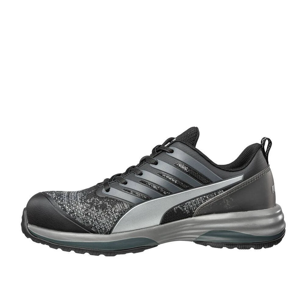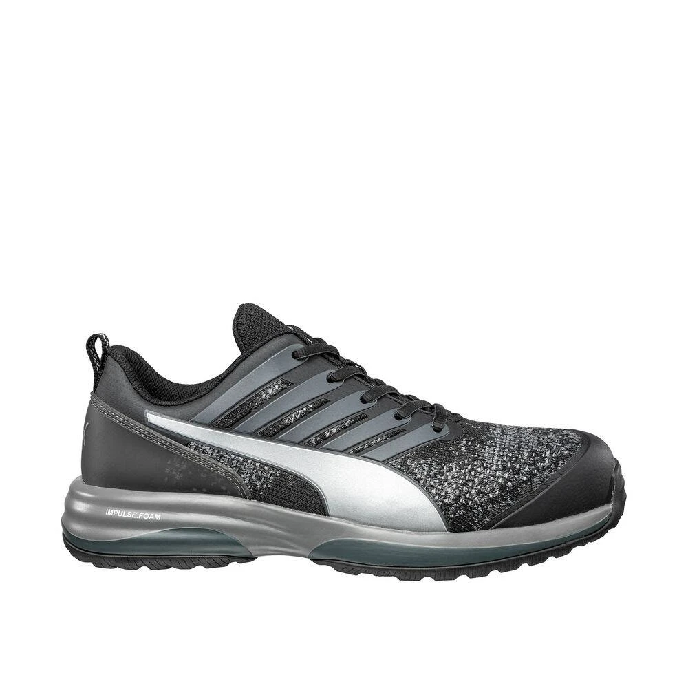 Les baskets de sécurité basses CHARGE BLACK de la marque Puma sont dotées de coques en fibre de verre et semelles anti-perforation souples Fap®lite, ainsi que d’une tige en Safety Knit®. Elles possèdent une doublure multifonctionnelle en BreathActive et son assie du pied est en Evercushion® Custom Fit Mid. Elles sont également munies de semelles en caoutchouc Motion Cl qui sont résistant à la chaleur jusqu’á 300 °C et antidérapante (SRC), de semelles intermédiaires d’Impulse.Foam® et Power Plate.