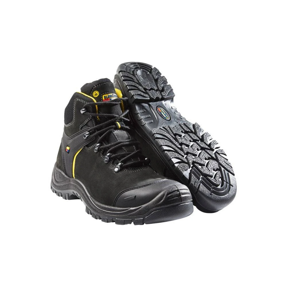 La chaussure de sécurité haute S3 SRC Blaklader est légère et a une très bonne adhérence grâce à ses semelles anti dérapantes SRC. Un renfort au niveau du talon aide à le maintenir et protège des impacts contre la cheville. Une membrane permet à la chaussure d’être à la fois résistante à l’eau et, grâce à sa doublure mesh, d’être respirante. Ces chaussures bénéficient d’une coque aluminium légère résistante à 200 joules et de semelles anti perforation textile laissant une bonne souplesse à la semelle.