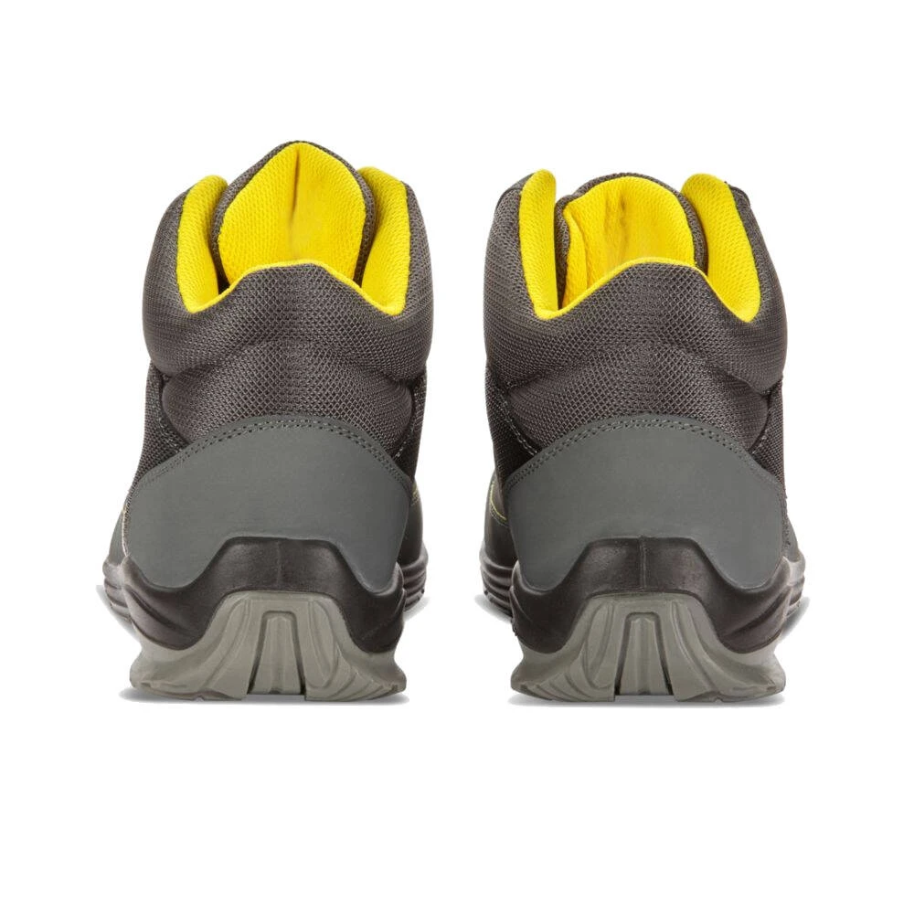 Les chaussures de sécurité montantes Diadora D-Blitz S3 SRC sont fabriquées à partir d’un cuir nubuck hydrofuge et sont 100 % sans partie métallique. Elles disposent en effet d’une coque Diadora Multilayer en fibre de verre résistante à 200 joules et de semelles anti perforation K Sole textile. Légères, flexibles et confortables, ces D-Blitz de Diadora sont destinées au secteur de l’industrie légère / services, transports / logistique, secteur aéroportuaire, etc.