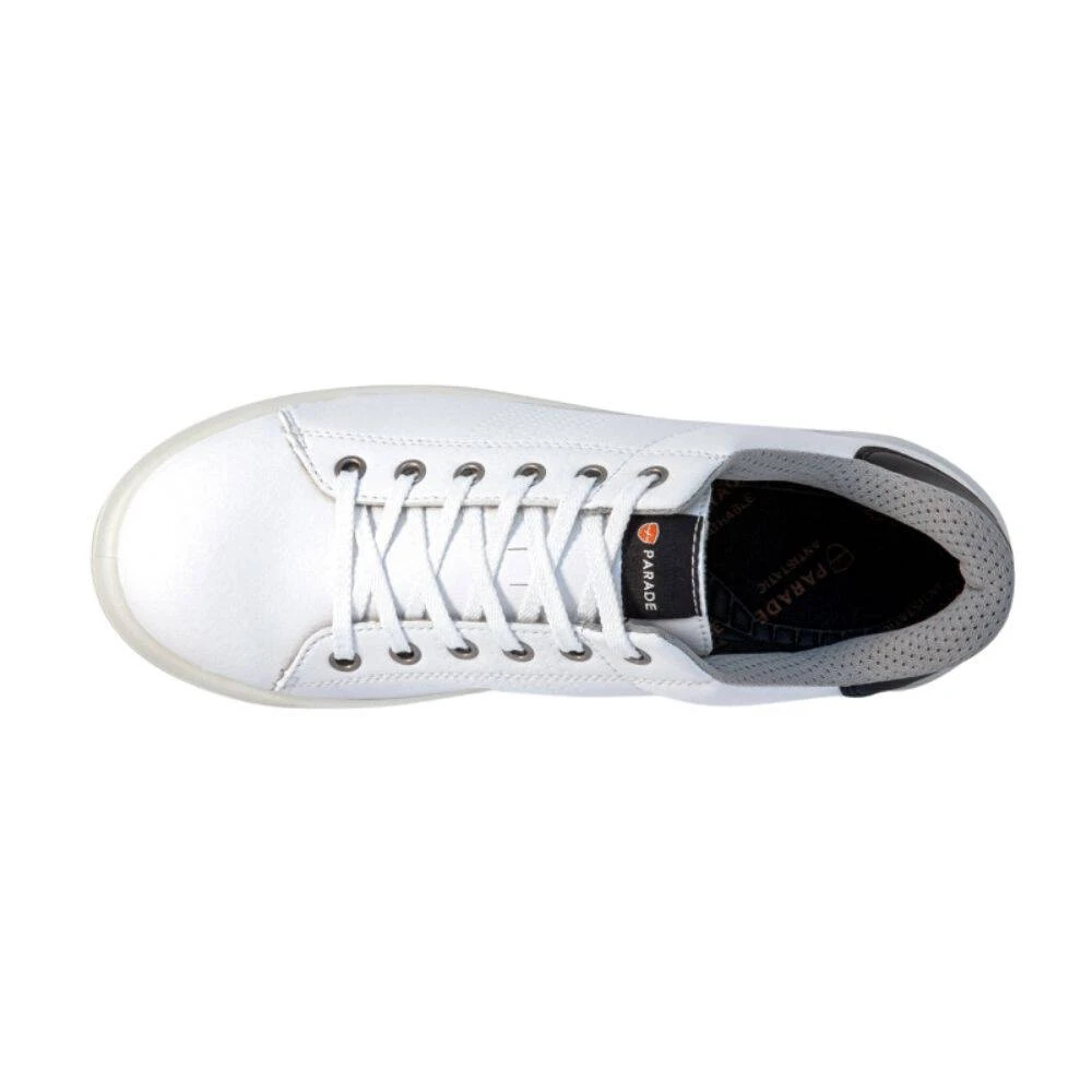 Les chaussures de sécurité basses Parade JAMMA S3 SRC sont en matériaux légers et solides pour un excellent confort au travail. Grâce à une empeigne robuste en cuir huilé, ces baskets au look très décontracté ont une parfaite imperméabilité et s’ajustent aisément aux pieds dus à un laçage fonctionnel. Doublées en textile, elles assurent une aération totale à l’intérieur qui se complète à un maintien stable de la voûte plantaire VPS de la semelle de propreté en maille/mousse PU. Une structure interne qui atténue la fatigue et améliore la démarche du porteur. Pour une meilleure sécurité au quotidien, elles disposent d’embout de protection orteils en acier contre les écrasements et d’une semelle en PU bi-densité antidérapante. Un semelage doté d’une plaque anti-perforation en acier ayant une propriété résistante aux hydrocarbures et aux charges électrostatiques. Au design tendance, ces sneakers sont très pratiques pour toutes activités professionnelles dans le commerce, la distribution et la logistique.