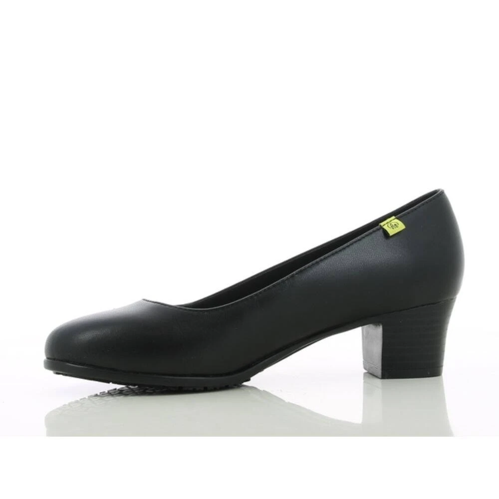 Les chaussures de travail femme Oxypas JULINE SRA disposent d’une structure confortable et aérée pour une longue journée de travail. Respectant les normes CE EN ISO 20347 2012 SRA ESD, elles sont conçues avec un talon haut de 4 cm, l’extérieur en cuir synthétique et la doublure en Coolmax améliorent l’aération tout en régulant la transpiration par transfert d’humidité. La semelle antidérapante issue de la technologie Oxygrip® garantit une adhérence maximale. Elles sont équipées d’une semelle intermédiaire en EVA amovible et d’une pastille antistatique ESD, ces chaussures ultralégères sont destinées aux professionnelles de la santé, de al restauration (service, hôtellerie,etc.) de la beauté et du bien-être.