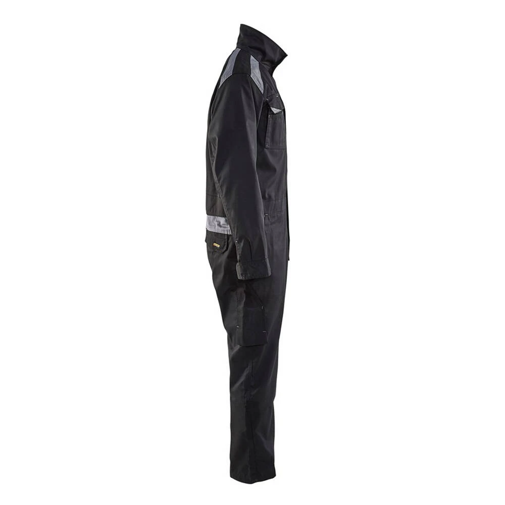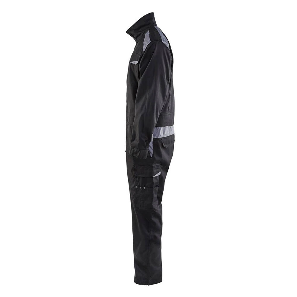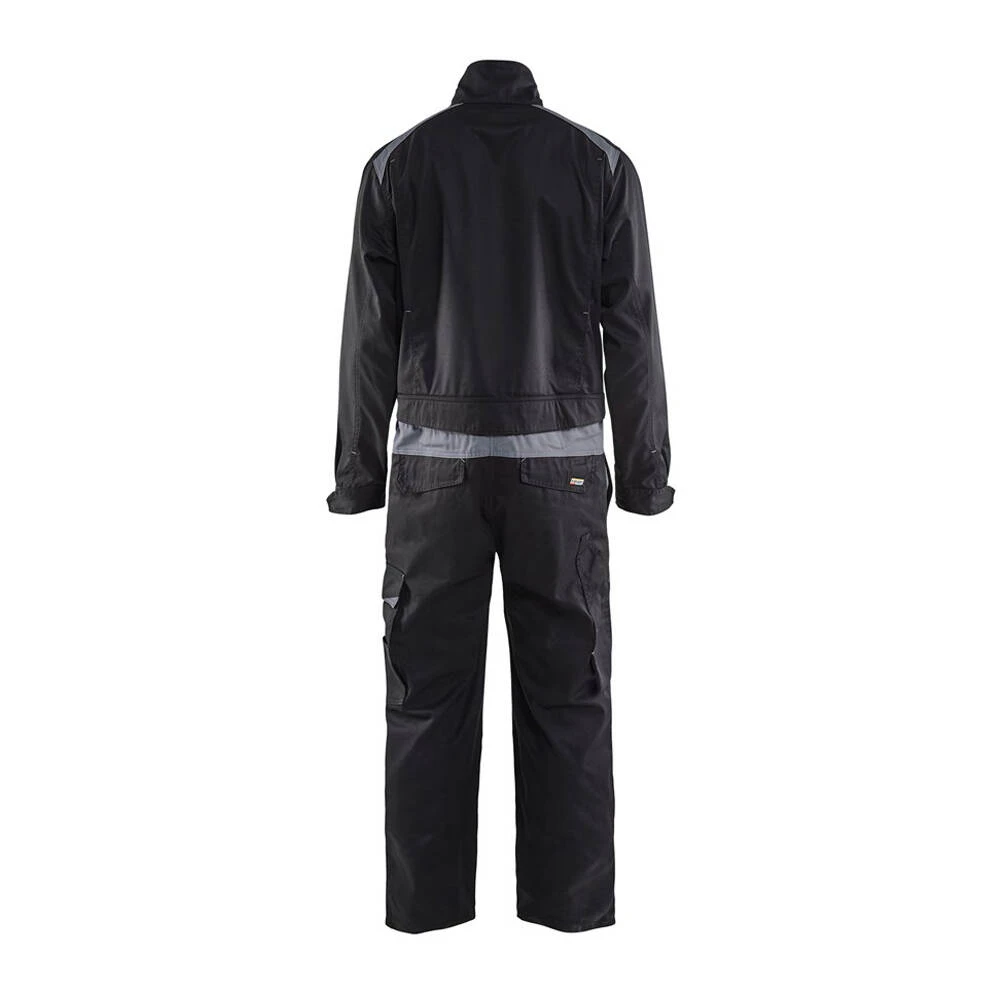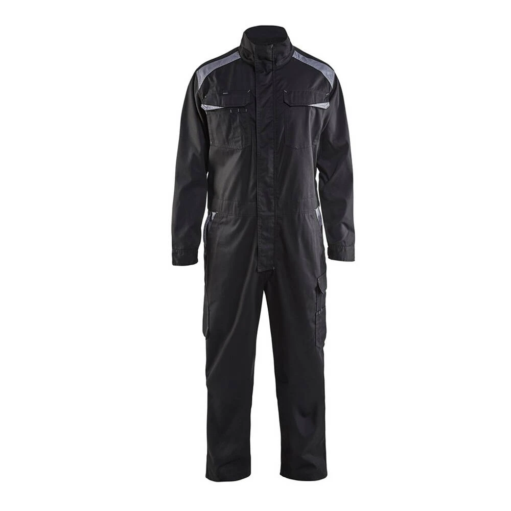 Cette combinaison de travail Industrie manches longues Blaklader est de fabrication 100% coton. Elle dispose d’une taille élastiquée, des poignets réglables, un dos stretch, une fermeture éclair plastique recouverte sur deux côtés, poche mètre ainsi que d’autres poches et enfin les épaules avec couleur contrastante.