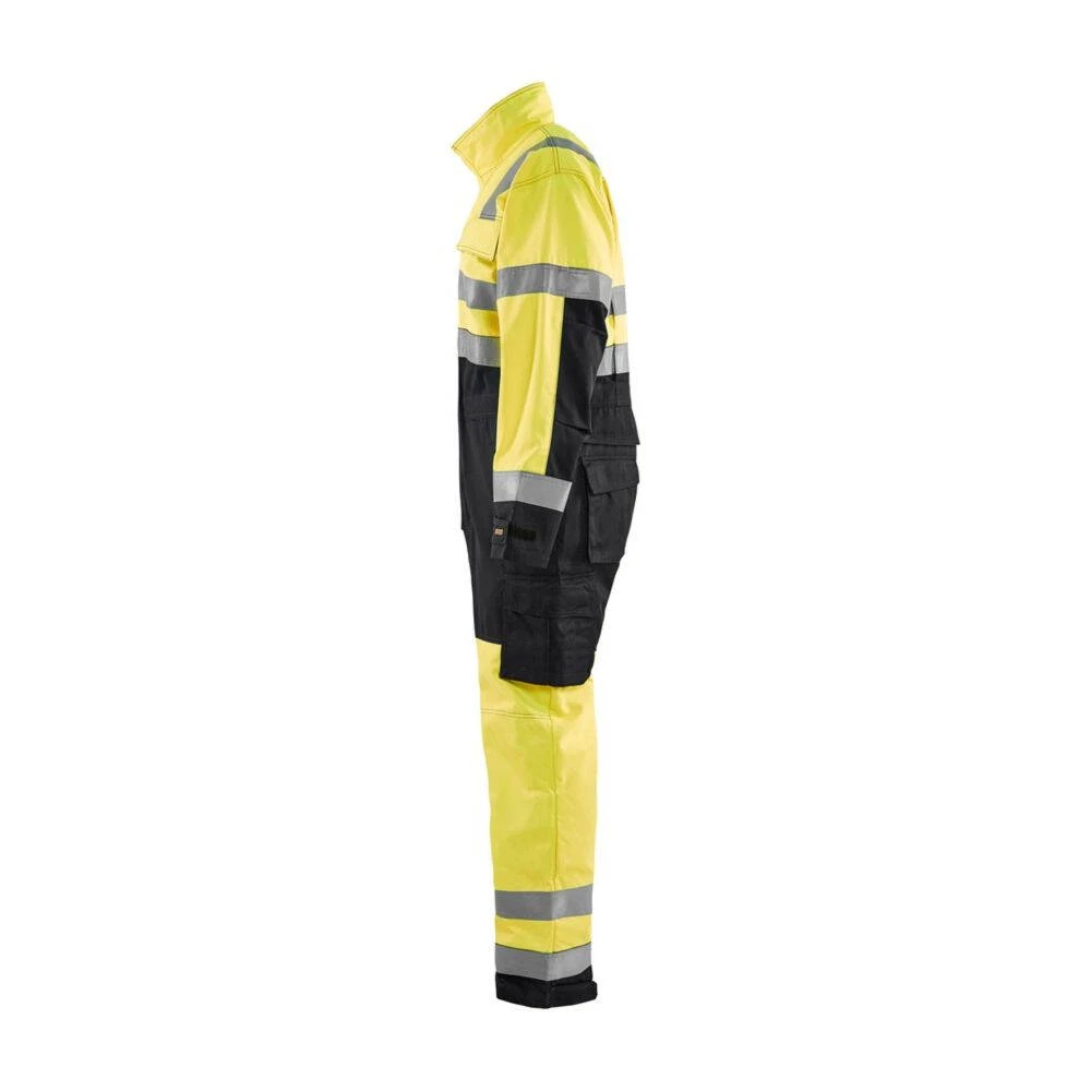 Cette combinaison de travail manches longues haute visibilité de la marque Blaklader dispose d’un col haut avec fermeture éclair et plusieurs poches pour plus de rangement possible. Elle est agréable à porter et confortable en condition de travail, grâce à son soufllet d’aisance à l’arrière et sa ceinture élastiquée.
