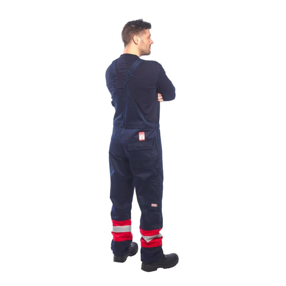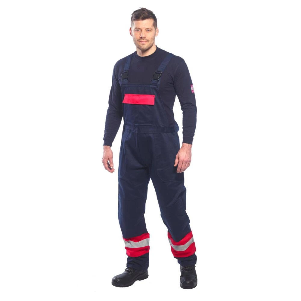 Cette cotte à bretelles bicolore de la marque Portwest a des bandes réfléchissantes sur le bas de jambes, 2 poches basses, une poche mètre, une poche poitrine à rabat et une poche arrière à rabat. Le bas de jambes de cette cotte est réglable. Sa fermeture est en laiton robuste, durable. Il dispose aussi de la protection de soudage classe 2.