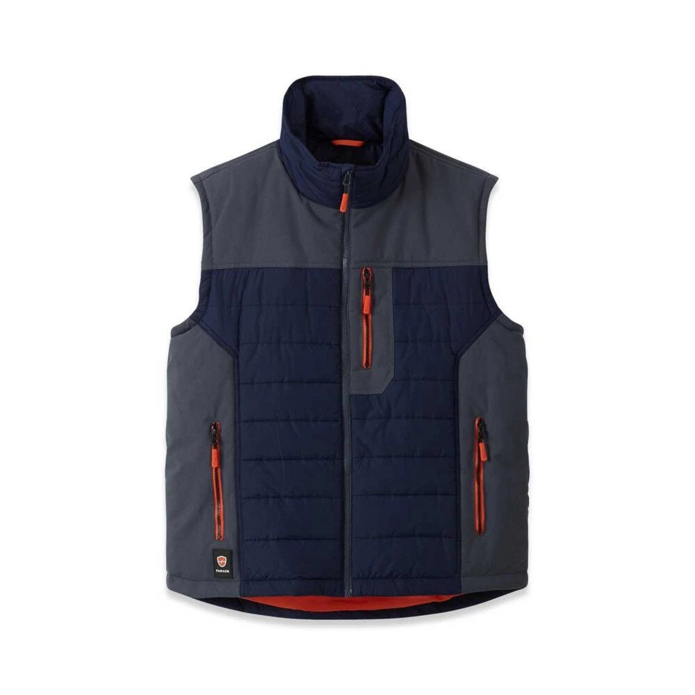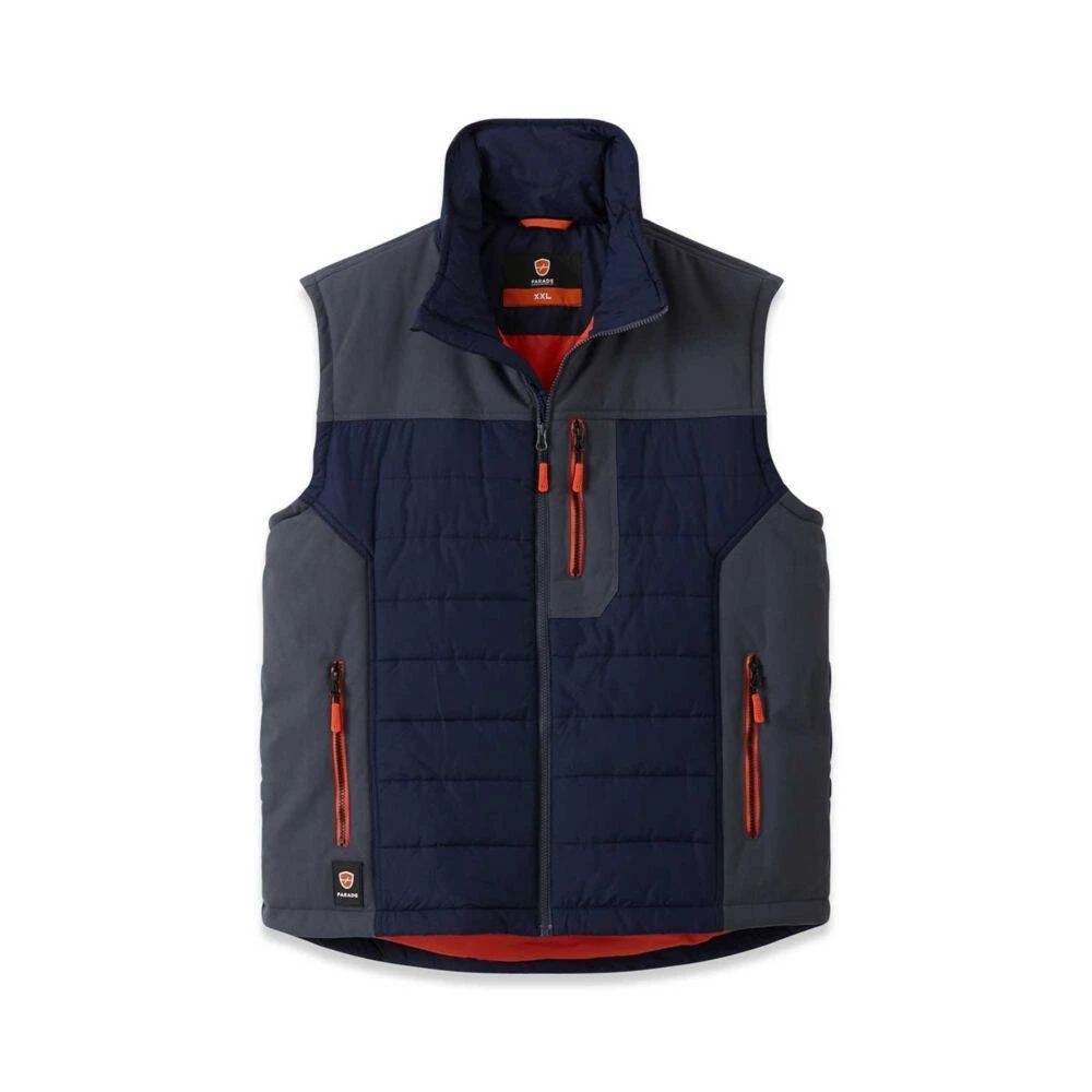 La doudoune de travail sans manches Parade OGUSSA est la tenue parfaite pour rester au chaud en hiver. Conçue en matière ripstop, elle est doublée en polyester ouate procurant une excellente isolation thermique complétée par le col rehaussé et le dos rallongé. Grâce à sa coupe ajustée munie d’une fermeture centrale, elle protège efficacement des poussières et des intempéries. Assurant ainsi un confort ultime au quotidien, sa praticité se démarque par les poches de rangements pour outils, stylo, crayon, portable au niveau de la poitrine, sur le devant et à l’intérieur. Le tissu externe est résistant à la déchirure assurant une plus grande durabilité avec les renforts anti-abrasion sur les épaules, la bande de col dos, les côtés et les poches. Une solidité appropriée à toutes activités professionnelles dans le commerce, la distribution, les espaces verts, le second œuvre et le BTP extérieur.