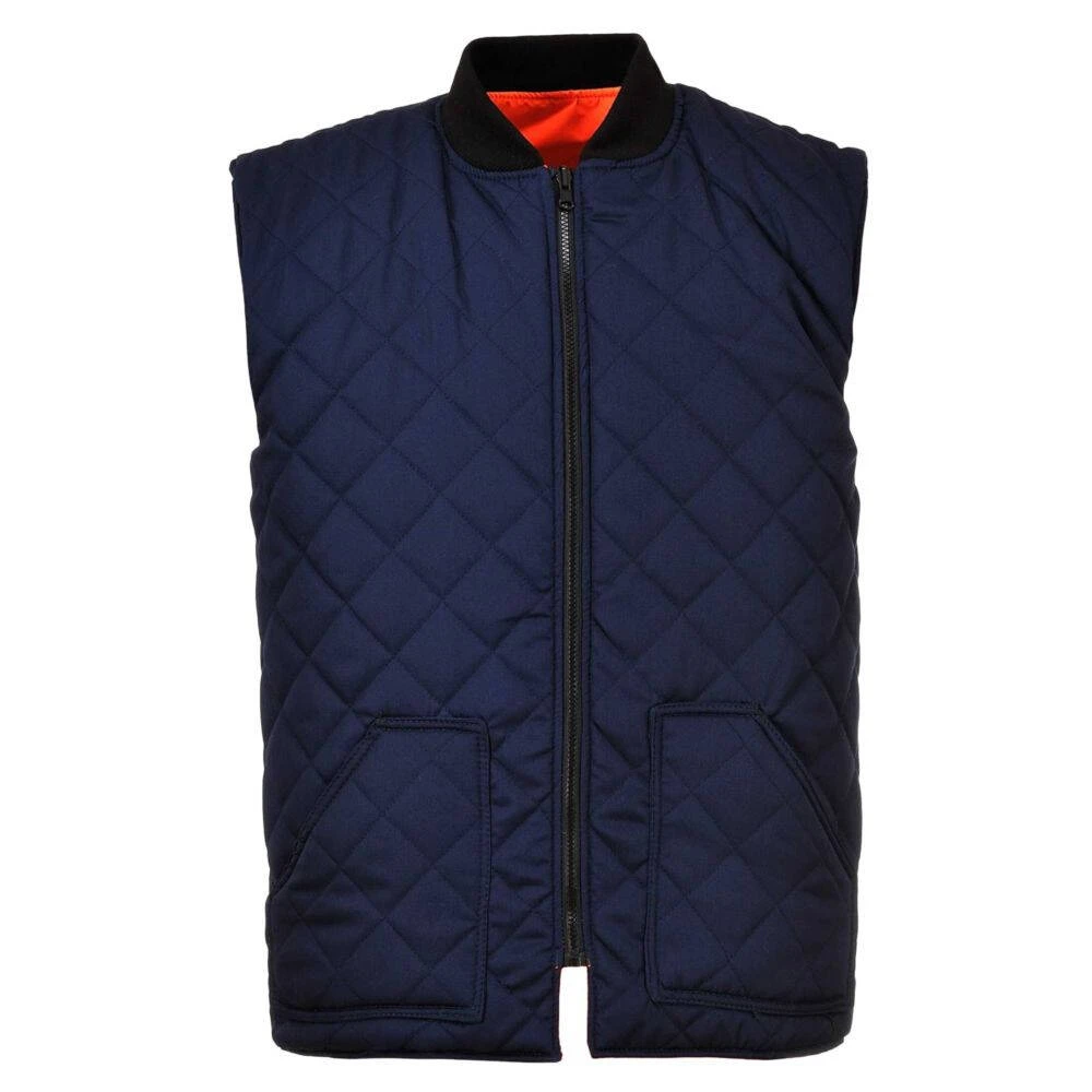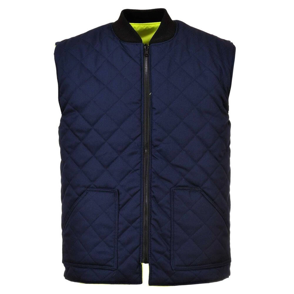 Gilet matelassé réversible Portwest haute visibilité avec une face fluo et une face marine gardant la chaleur. Il a deux poches basses de chaque côté ainsi qu’un col tricot. Le côté haute visibilité du vêtement vous apporte une sécurité maximale dans l’obscurité. Il dispose d’une doublure matelassée pour isolation thermique efficace.