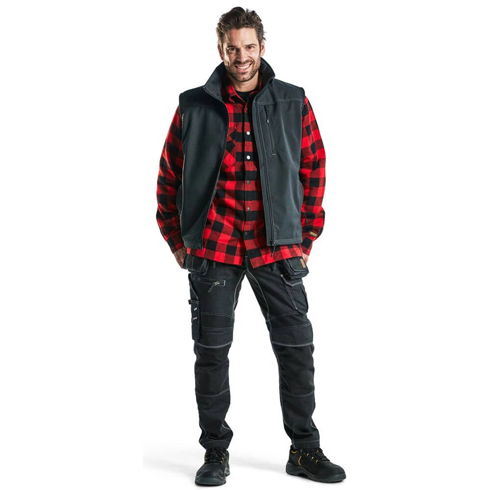 Le gilet Softshell Homme Blaklader en tissu doux, confortable, est à la fois étanche et coupe-vent. La bonne aération et l’élasticité du gilet offrent une mobilité optimale. Toutes les fermetures à glissière sont hydrofuges. Un vêtement sobre et agréable à porter, idéal pour la demi saison !