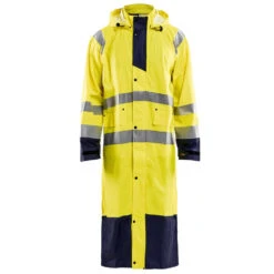 La veste de pluie haute Visibilité Homme Blaklader est un manteau de pluie pratique à haute visibilité avec détails réfléchissants. Fermeture avant avec bouton-pression. Capuche avec cordon de serrage. Certifié selon les normes EN 471 / EN ISO 20471 classe 3 et EN343 classe 3.1.