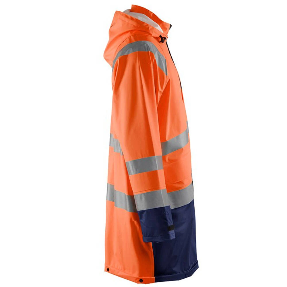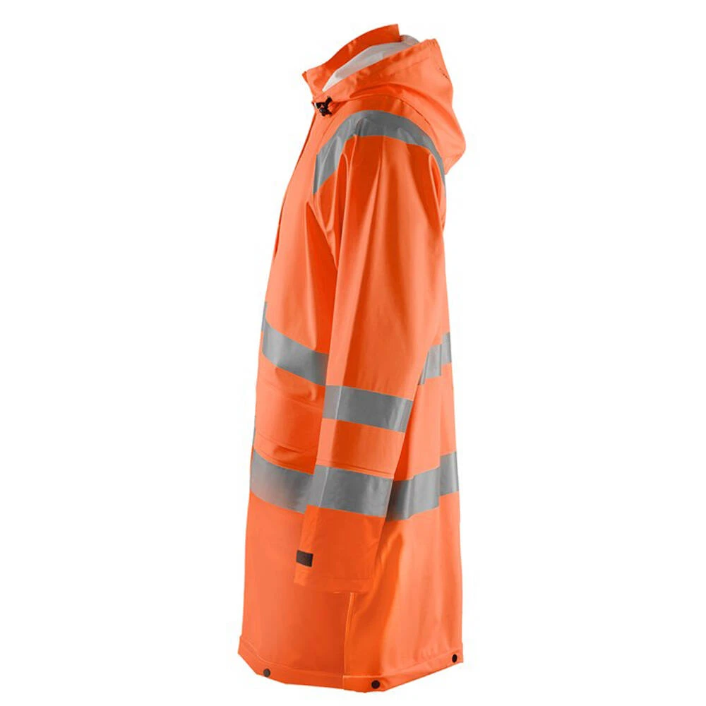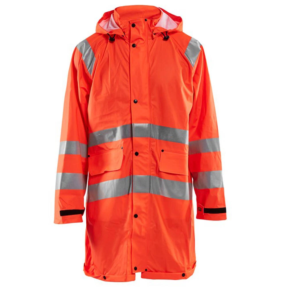 Le manteau de pluie haute visibilité Blaklader est une veste de pluie haute visibilité à capuche très fonctionnelle. Bord en gouttière qui peut être déboutonné. Bande réfléchissante à l’avant, au dos et sur les bras. Conforme à la norme EN471 classe 3, vêtement de protection haute visibilité, et à la norme EN343 classe 3.1, vêtement de protection par mauvais temps.
