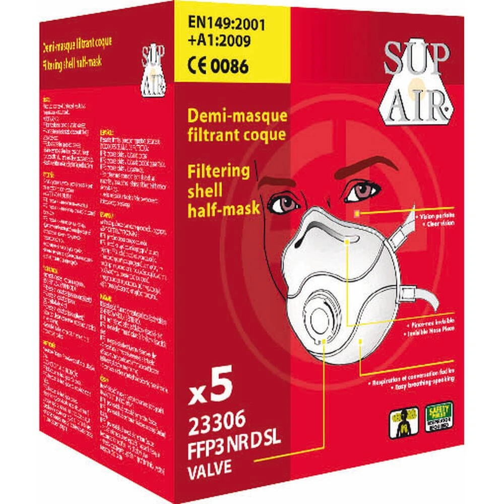 Ce masque respiratoire coque à usage unique avec soupape Sup Air FFP3 NR SL protège contre les aérosols solides et liquides aux toxicités faibles pour des concentrations jusqu’à 50 fois la VL. Principaux domaines d’utilisation : Industrie textile, artisanat, métallurgie, exploitation minière, travaux publics souterrains, menuiserie, soduure, fonte, découpage des métaux, hôpitaux, laboratoires, contrôles médicaux, industrie pharmaceutique, traitement des déchets toxiques, fabrication de batteries (Ni-Cad),etc. Il peut être utilisé environ 50 sessions de 8h et garder son efficacité.