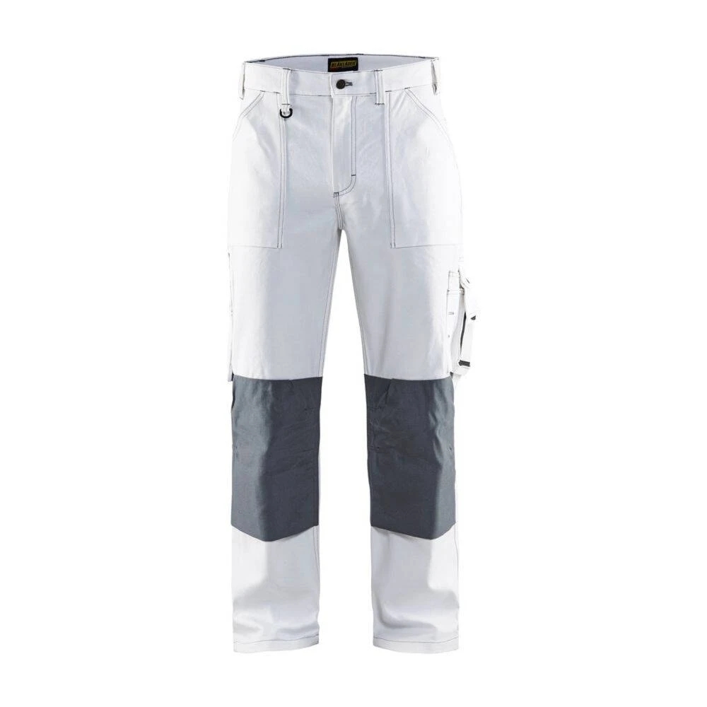Ce pantalon de peintre Blaklader est de fabrication 100% coton croisé. Il doté des fonctionnalités nécessaires à un travail quotidien facilité. En effet, de fabrication 100% coton sergé, ce pantalon permet d’absorber les projections de peinture et de vous garder propre et au sec. Les poches genouillères, poches arrières et poches pinceaux sont renforcées en Cordura®. Un pantalon de grande qualité avec triples coutures, très confortable et durable.
