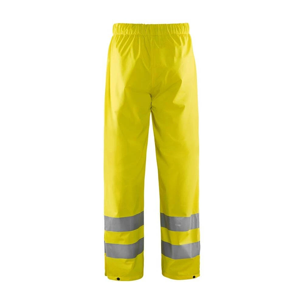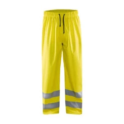 Ce pantalon de pluie haute visibilité Blaklader possède une ceinture élastique, un cordon ainsi qu’une bande réfléchissante autour du bas des jambes. Conforme à la norme EN343 (vêtement de protection contre la pluie), et EN471 classe 2 (vêtement haute visibilité), il vous permettra d’être protégé de la pluie tout en étant visible en toute circonstance !
