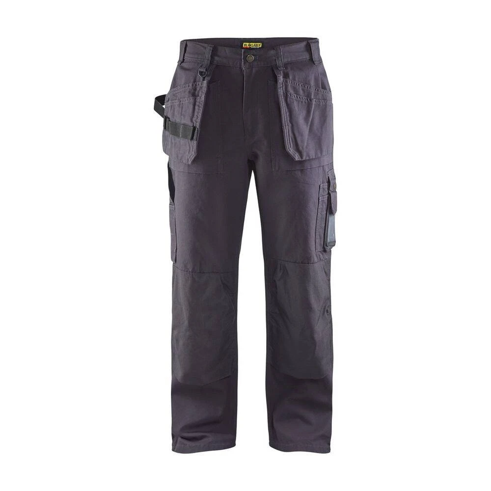 Ce pantalon de travail artisan Blaklader est de fabrication 100% coton canva. Ses triples coutures dans les zones sensibles nous permettent de prouver sa résistance et de vous les garantir à vies. De plus, ses poches genouillères sont renforcées en CORDURA®. Idéal pour les travaux d’artisanat, en intérieur ou en extérieur. Un pantalon à la fois fonctionnel, agréable à porter en condition de travail, et très durable dans le temps !