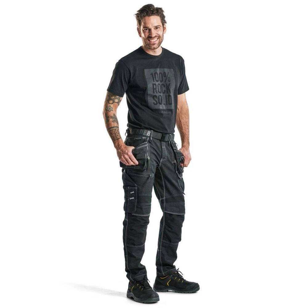 Ce pantalon X1900 Artisan stretch de la marque Blaklader est extrêmement durable grâce aux matériaux de qualités utilisés dans sa fabrication, notamment le Cordura qui donne une longue vie aux produits. L’extensibilité du tissu à l’entrejambe et aux mollets vous offre une liberté de mouvement optimale. Le modèle a une coupe légèrement slim et des jambes coniques. Poches genouillères à chargement par le dessus en CORDURA®- stretch pour un confort amélioré, même à genoux.