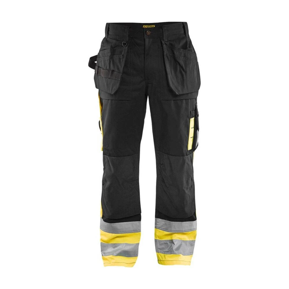 Ce pantalon artisan haute visibilité Blaklader polycoton est certifié EN ISO 20471 – classe 1 avec des renforts en Cordura® pour une bonne résistance aux accrocs et des triples coutures robustes, garanties à vie. Les parties haute-visibilité ont des coloris foncés sur les zones les plus exposées à la salissure et des matières lisses pour que celle-ci s’écoule facilement. Un pantalon fonctionnel, très résistant, vous permettant de rester visible dans les conditions de travail difficiles (obscurité, bords de route, etc.).