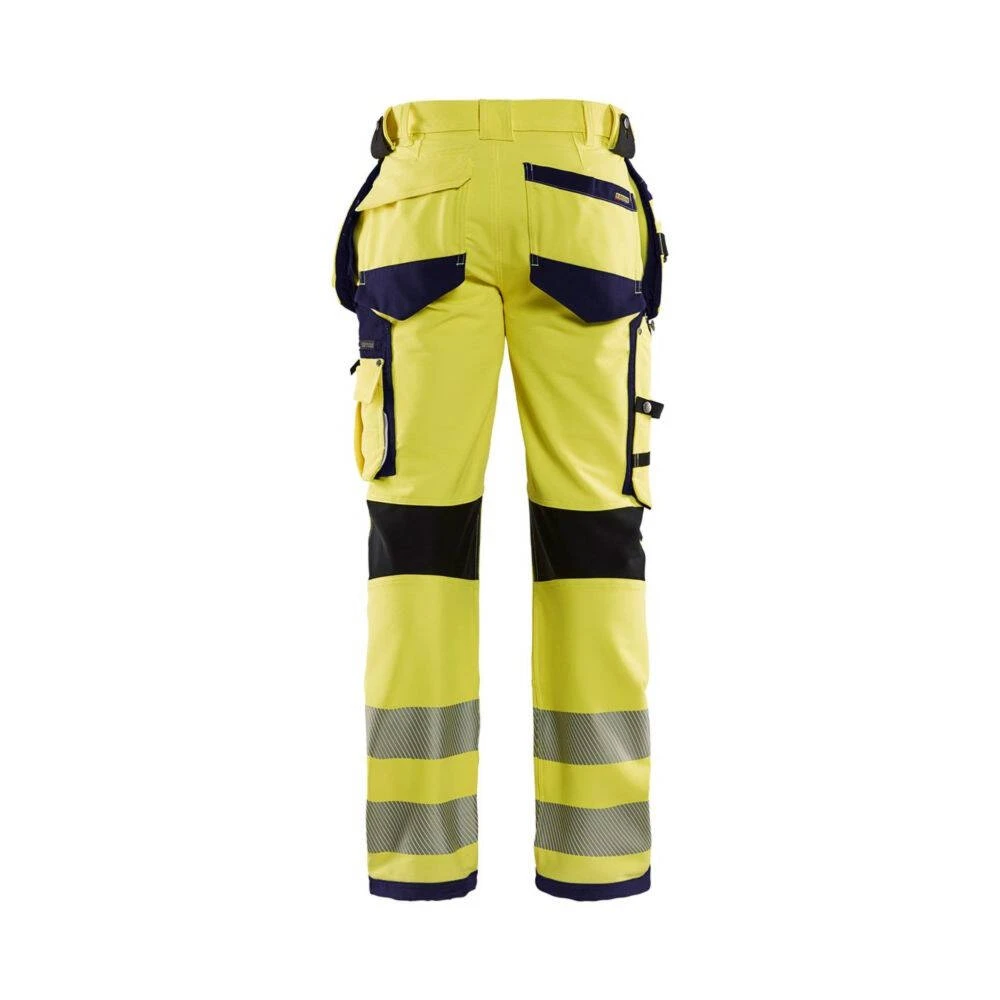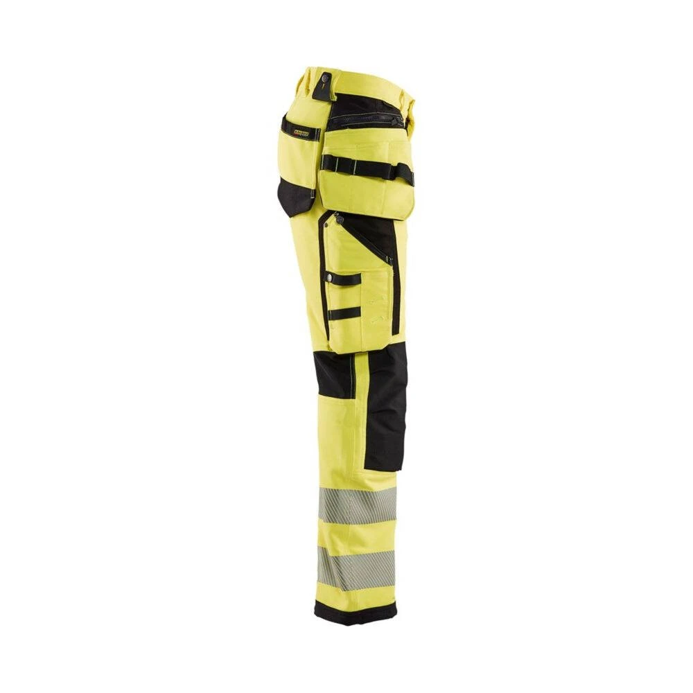 Le pantalon de travail haute visibilité Blaklader STRETCH 4D est polyvalent et confortable grâce à son tissu stretch extensible quadri directionnel. Doté d’une coupe ergonomique avec les jambes fuselées, il dispose de détails intelligents pour le confort du porteur. Pour l’aspect pratique, ce pantalon possède de nombreuses poches de rangement pour outils, stylo et téléphone portable ainsi que des boucles porte-outils fonctionnels. Les poches arrières, les flottantes, et la poche mètre sont renforcées en Cordura pour optimiser la durabilité. Les bandes réfléchissantes aux jambes assurent la visibilité en cas de pluie, d’obscurité, ou sur des chantiers à risque (bords de route, etc.).