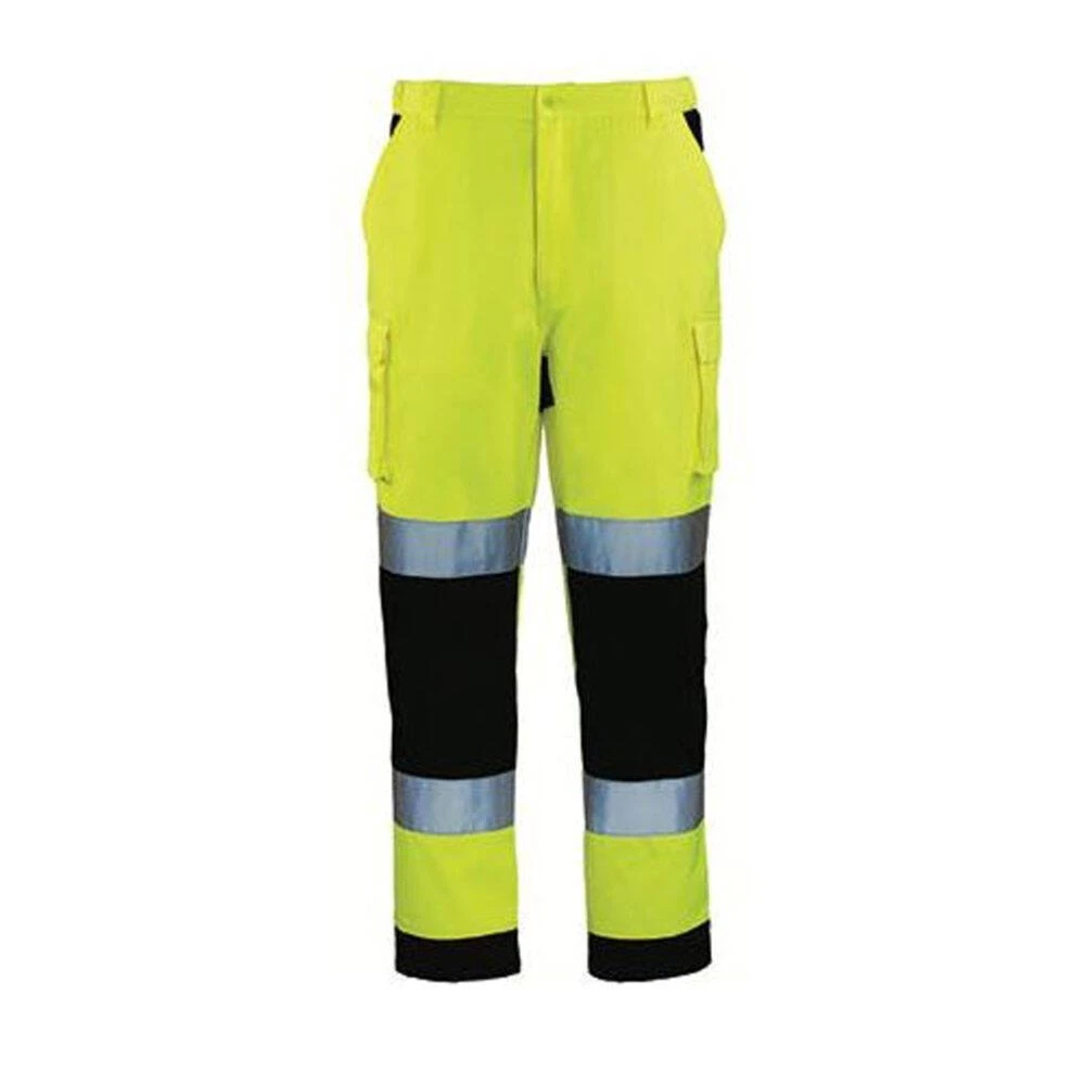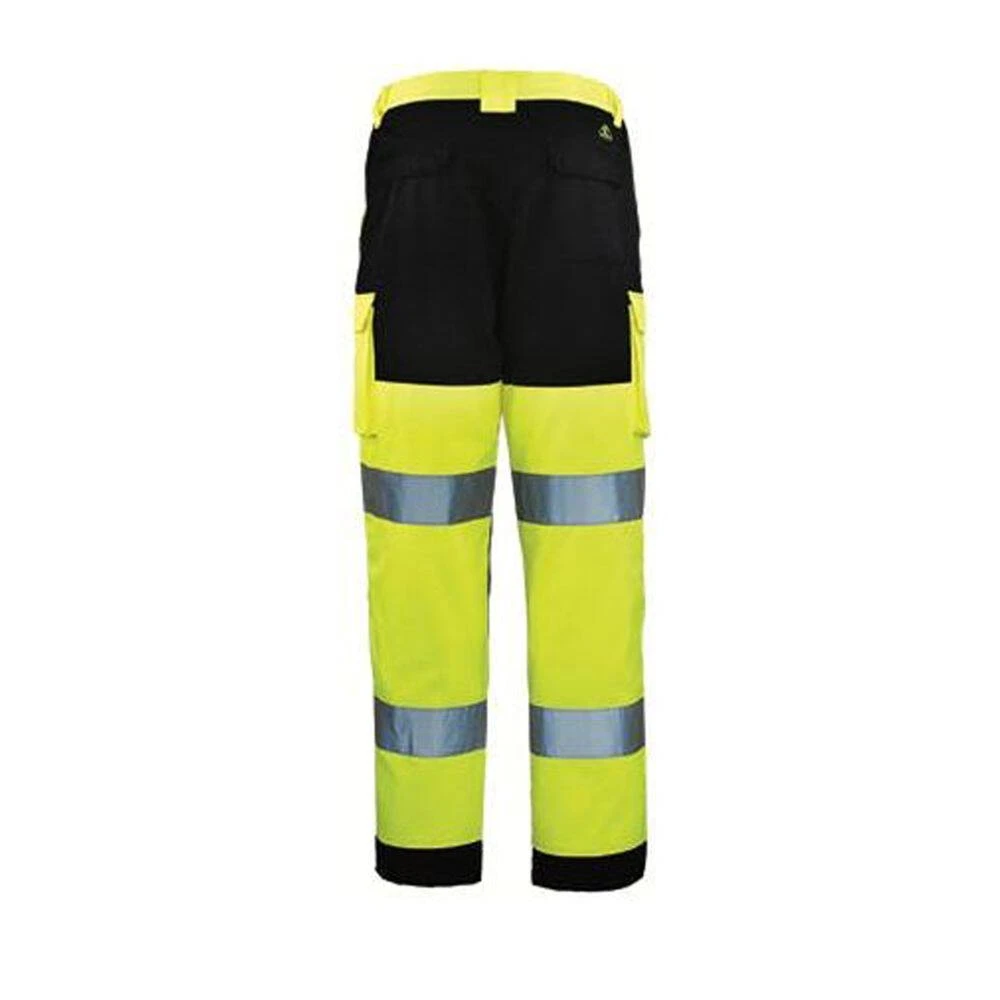 Ce pantalon haute visibilité possède des fermetures en bouton à la taille, d’une braguette et de boutons avec rabat. De plus ce pantalon dispose de bandes rétro réflectives cousues, 2 poches repose main, 1 poche arrière avec rabat et 1 poche mètre sur la jambe droite.