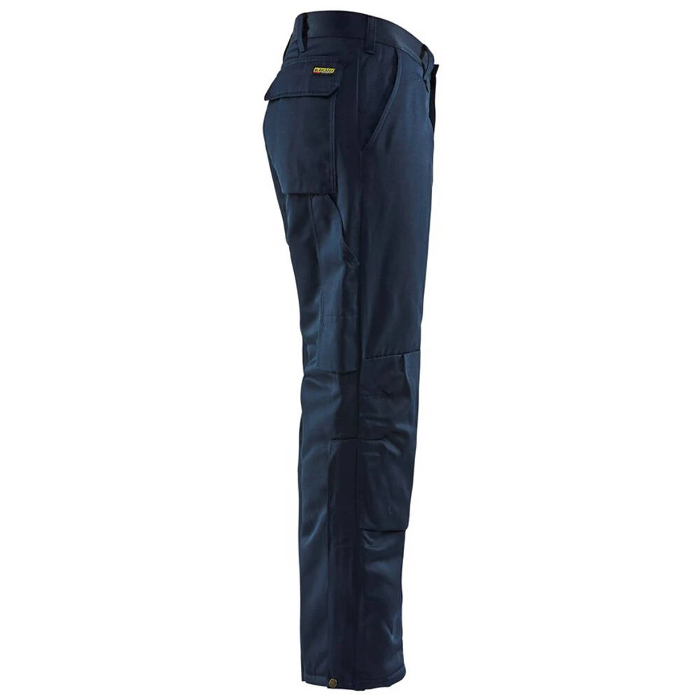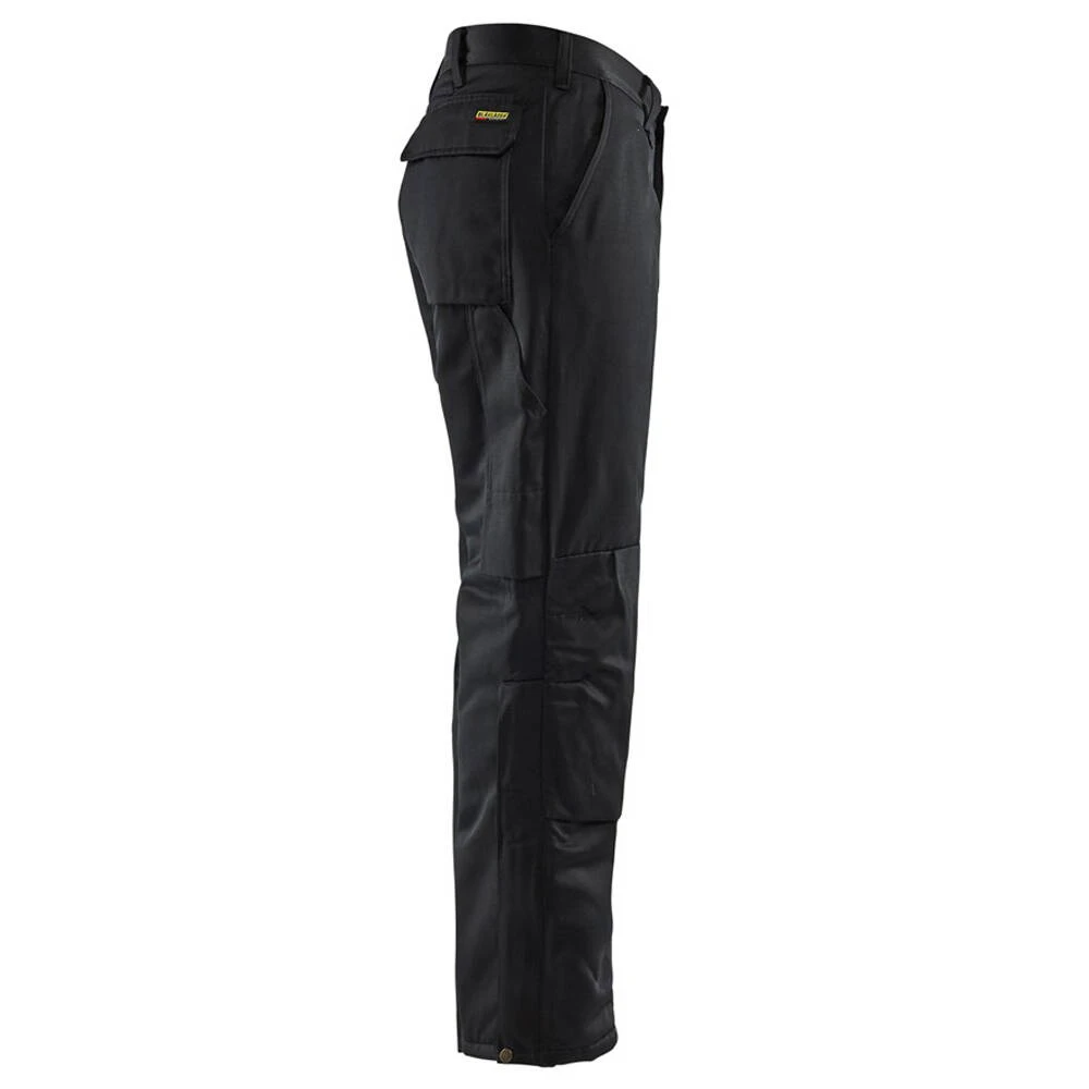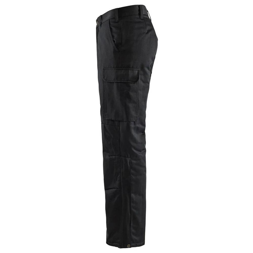 Ce pantalon de travail polycoton Blaklader Hiver vous offre un confort extrême en pleine saison hivernale. Il est résistant à la déchirure avec des poches genouillères sur deux niveaux de placement différents. Il est également équipé de poche arrière et de poche-cuisse avec rabat et fermeture velcro, de poches latérales avec molleton, et une poche à mètre. Les bas des jambes ont une fermeture zip pour le placer facilement sur des bottes d’hiver.