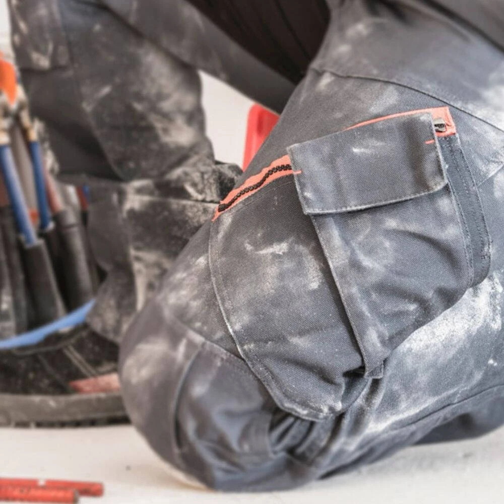 - Poche amovible zippée positionnable côté gauche ou droit, poches genouillères ouverture en bas