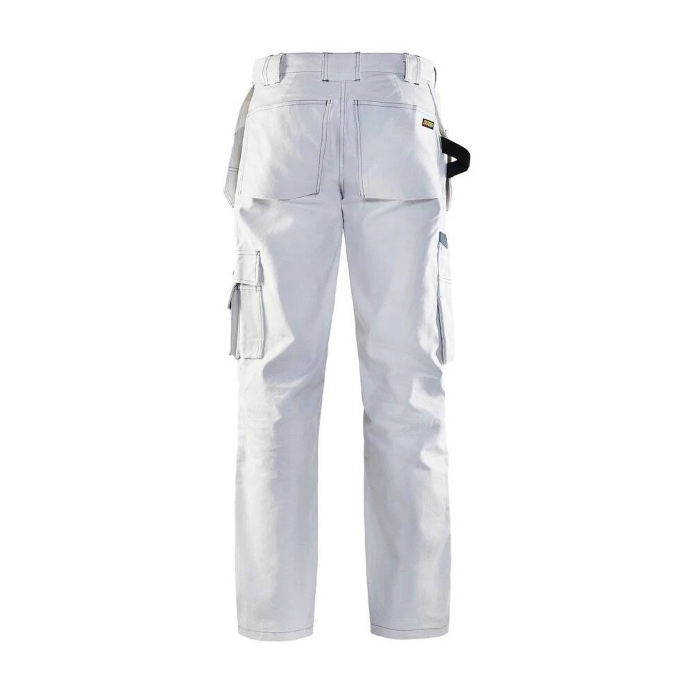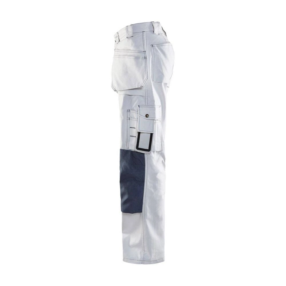 Ce pantalon de travail peintre Blaklader est de fabrication 100% coton. Il doté des fonctionnalités nécessaires à un travail quotidien facilité. De fabrication 100% coton sergé, ce pantalon permet d’absorber les projections de peinture et de vous garder propre et au sec. Les poches genouillères, poches arrières et poches pinceaux sont renforcées en Cordura®. Un pantalon de grande qualité avec triples coutures, très confortable et durable.