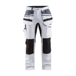 Ce pantalon de travail pour peintre Blaklader 100% coton est moderne, confortable, et pratique avec ses nombreuses poches fonctionnelles : poches à outils de peinture, poches extérieures au niveau des genoux, et zones extensibles sur les zones à forte mobilité (entrejambes, genoux, fesses et mollets).