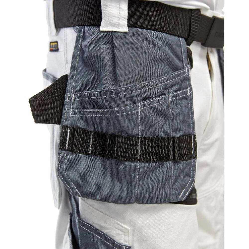 Ce pantalon de travail peintre X1500 Blaklader est de fabrication 100% coton. Il est robuste alliant design moderne et fonctionnalités pour un travail facilité au quotidien. Ce pantalon est conçu spécialement pour les peintres et maçons, il est doublé au niveau des cuisses et dispose d’une poche spéciale pinceau et brosse. Il dispose de renforts en Cordura aux endroits sensibles pour une très grande durabilité de ce pantalon.