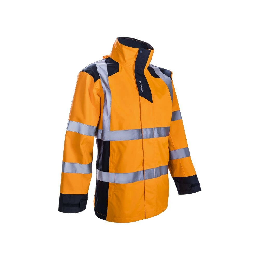 entrées de poches. La parka SANGAKU est combinable avec les produits KAZAN (veste et softshell). Fonctionnelle, cette veste de pluie Haute Visibilité HV a plusieurs poches et un porte-barge.