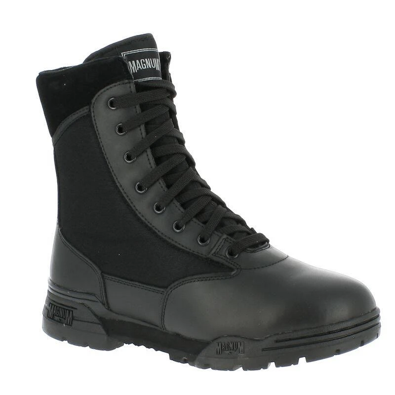 Les rangers Magnum CLASSIQUE répondent aux attentes des agents militaires et de sécurité en termes de qualité. Ils comportent une tige en cuir et en toile épaisse, ce qui garantit résistance et durabilité. Les doublures Cambrelle évacuent la transpiration, ce qui permet de rester au sec. Pour davantage de solidité et de flexibilité à la marche, ces chaussures sont dotées d’un cambrion en acier. Les rangers CLASSIQUE sont munis d’œillets anti-rouille. Fiables, leurs semelles extérieures en gomme carbone isolent du froid, sont antidérapantes et ne se dégradent pas au contact des hydrocarbures.