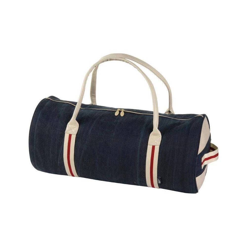 Sac de sport en coton canvas délavé pour un esprit marin, peut être porté à l’épaule ou à la main. Dimensions 58x27cm.