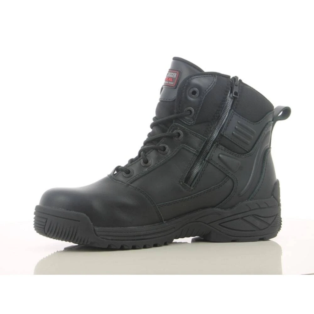 Ces chaussures de sécurité montantes Safety Jogger Trooper S3 WR SRC vous apportent une protection complète de vos pieds, tout en confort. En effet, ces chaussures sont équipées de coques de protection en composite légère et résistantes à 200 joules, de semelles anti perforation souples, et de semelles anti dérapantes SRC. Résistantes à l’eau, ces chaussures membranées sont à la fois imperméable et respirante grâce à la doublure Sympatex.
