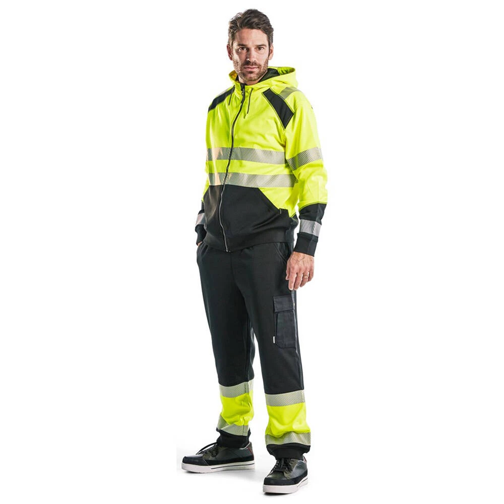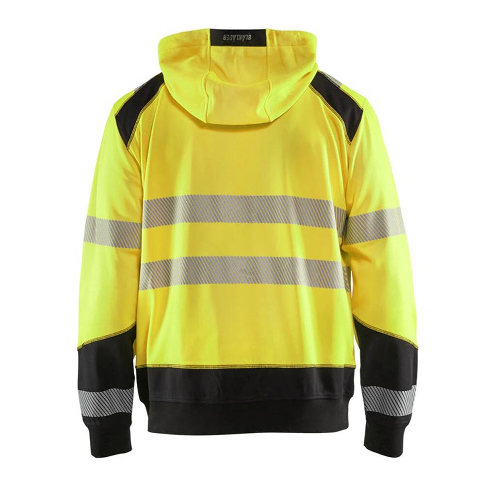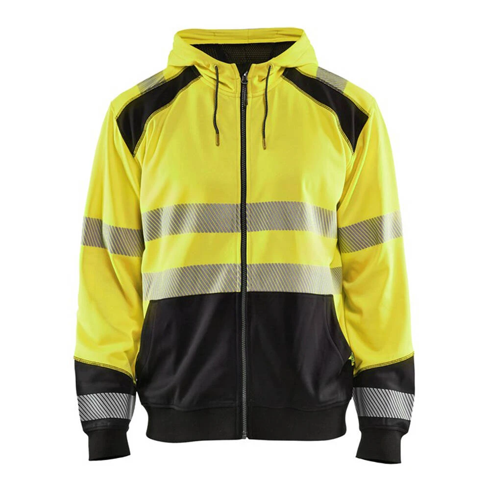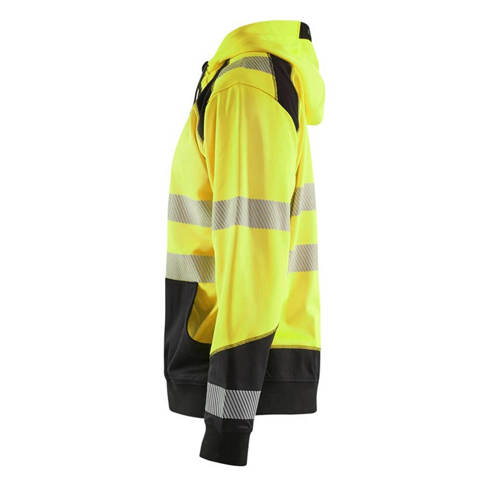 Le sweat à capuche Haute Visibilité Homme Blaklader est bicolore avec des couleurs sombres sur les zones sujettes aux salissures. Les caractéristiques pratiques comprennent une ouverture dans la poche pour cordon (protection auditive, casque audio, kit main libre) et une poche zippée pour téléphone. Le sweat-shirt est très visible de toutes les directions. Certifié conforme à la norme EN ISO 20471, classe 2.