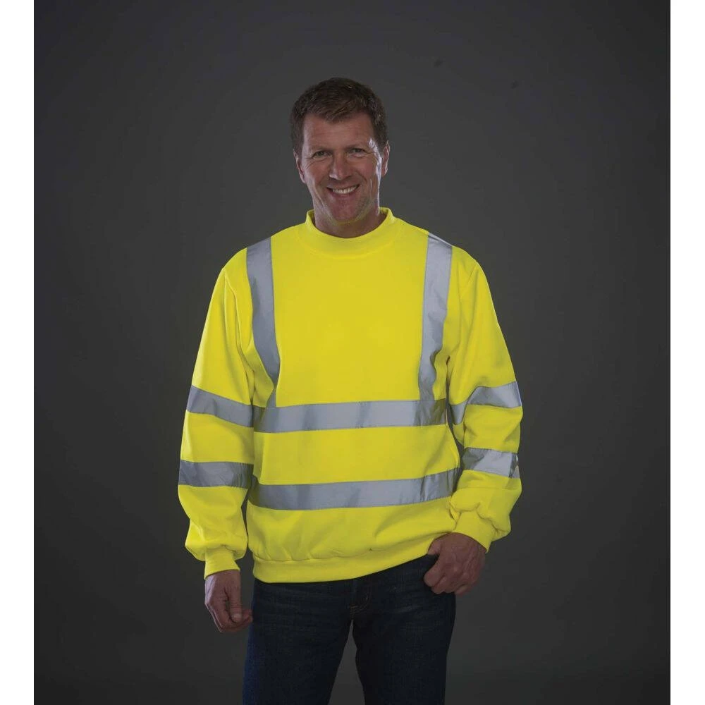 Ce sweat-shirt de travail haute visibilité Yoko est en 100% polyester antiboulochage. Il augmentera votre visibilité sur les chantiers à risque, limitant ainsi les risques d’accident. Il est muni de manches montées, d’une taille, d’un col et de poignets en bord côte. Deux bandes réfléchissantes de 5 cm de large autour du corps et des bras et une sur chaque épaule permettent d’être parfaitement visible.