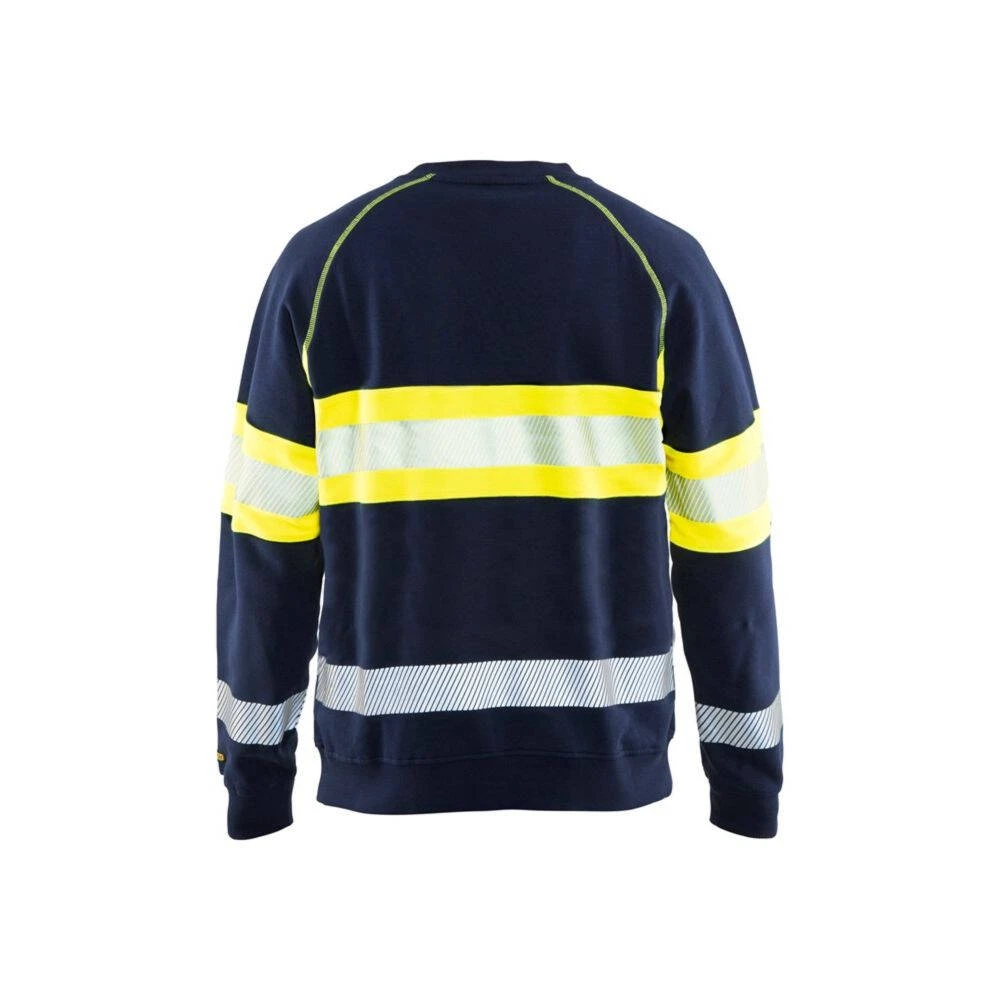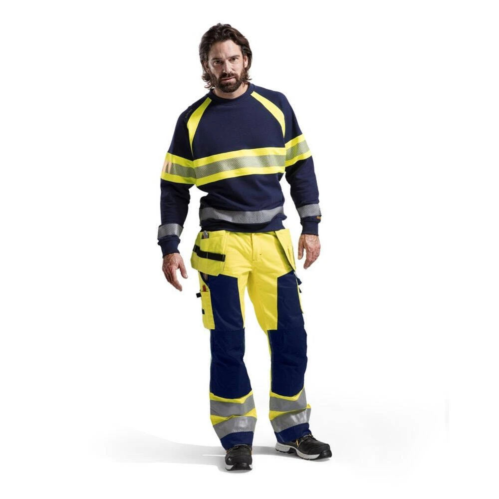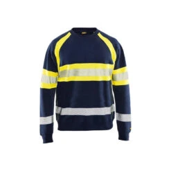 Le sweat-shirt haute visibilité Blaklader est doux et confortable avec des bandes réfléchissantes strillées et des inserts en stretch pour une liberté de mouvement accrue. Les parties sombres sont en 100% coton, les parties fluorescentes en 100% polyester. Col rond et poignets en maille côtelée. Certifié selon la norme EN ISO 20471, classe 1.