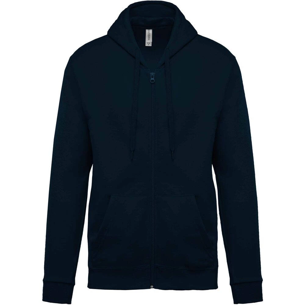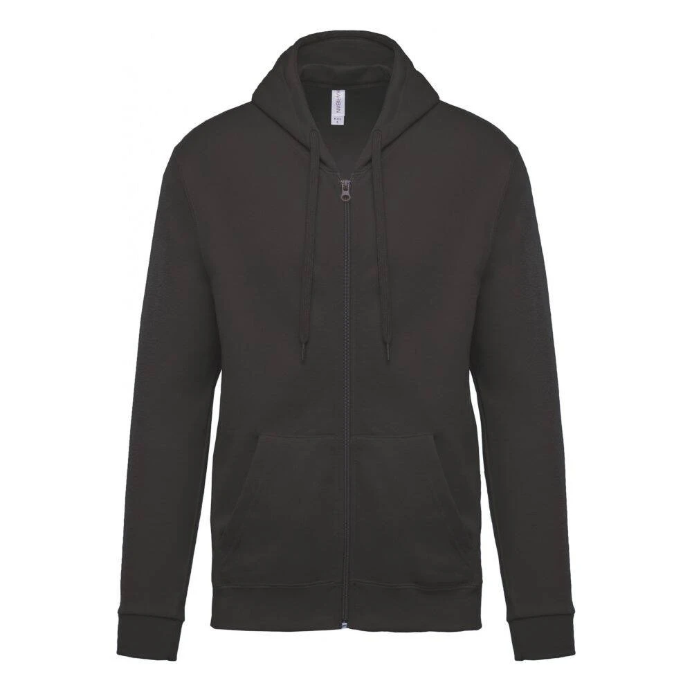 Ce sweat-shirt zippé capuche Kariban est en manches montées avec une coupe tubulaire. Il dispose d’une fermeture zippée nylon, une capuche doublée avec cordon de serrage ton sur ton et des poches kangourous.