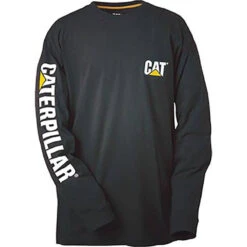Un très beau tee-shirt à manches longues Caterpillar 100% coton, avec logo imprimé en blanc sur la manche droite et sur la poitrine gauche. Il est parfaitement adapté pour le travail en extérieur comme sous-vêtement de travail.