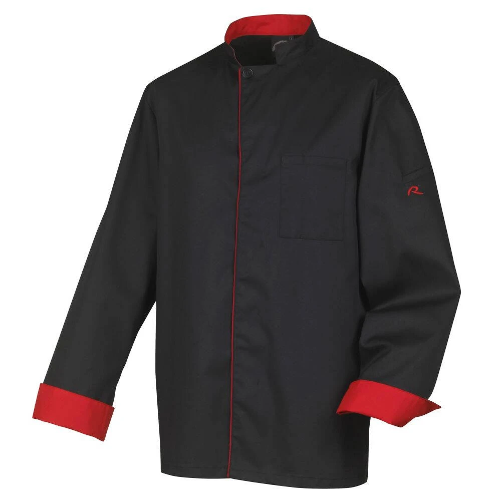 La veste de cuisine mixte manches longues Robur Boko est dotée de deux soufflets dans le dos pour plus d’aisance en condition de travail. Le haut du plastron fermé par des boutons cousus, vous permet de jouer avec le style du col (col mandarin ou col V ouvert, selon votre humeur !). Son liseré de couleur rouge assorti aux revers des manches, apporte une touche de modernité et d’élégance).