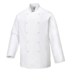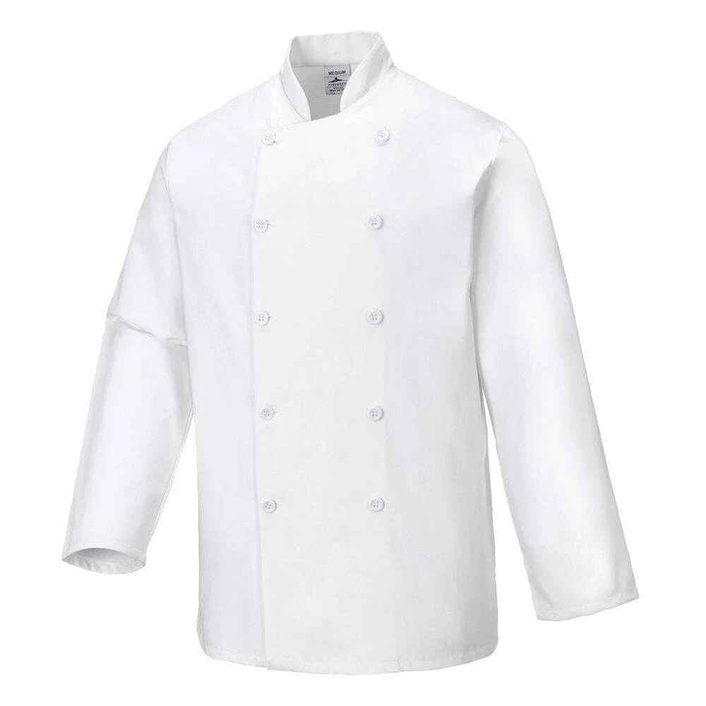 Cette veste de cuisine Portwest Sussex 100% coton 280g est trés confortable. Elle absorbe la transpiration et vous restez au frais. De coupe classique et à boutons fixes elle convient à tous.