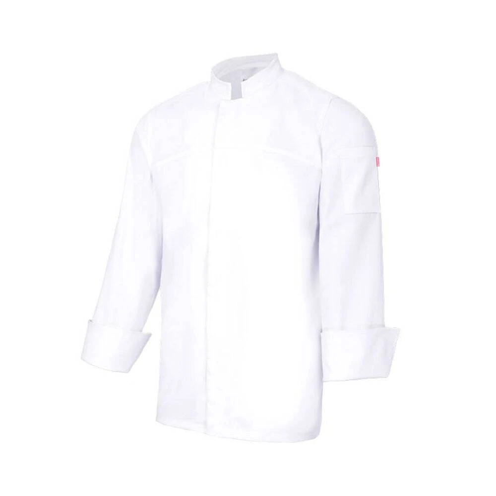 La veste de cuisine stretch de la marque VELILLA est un modèle à manches longues avec fermeture par boutons pression cachés qui dispose d’un col mao, Ouvertures aux poignets, très agréable à porter. Cette blouse possède une poche sur la manche gauche. Elle sera destinée au secteur de la restauration, et des métiers de bouche comme la boulangerie, charcuterie, traiteur, pâtisserie, etc…