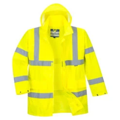 Cette veste de pluie haute visibilité Portwest Lite Traffic vous maintiendra au sec et visible de tous, très agréable à porter le S160 inclus des caractéristiques telles qu’une fermeture à glissière sous rabat avec bandes auto-aggrippantes, 2 poches à rabat et poignets réglables pression et une capuche détachable pour améliorer la fonctionnalité. Ce vêtement normé EN343 est étanche, et bénéficie d’une doublure mesh pour plus de respirabilité.