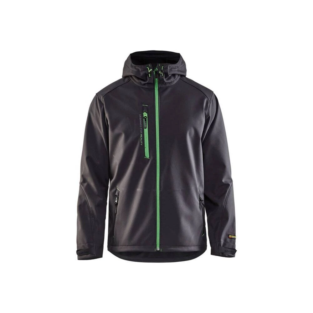 Cette veste softshell à capuche de la marque Blaklader est souple et fabriquée à base de matériau respirant étanche au vent et à l’eau. Le bas de la veste est réglable par cordons de serrage. La capuche de la veste est fixe et réglable pour un ajustement parfait. Les éléments réfléchissants sur la poitrine et la poche vous permettent d’être plus visibles dans des conditions de faible luminosité. Cette veste softshell est très polyvalente et est idéale pour la demi saison ou la saison froide en couche intermédiaire.