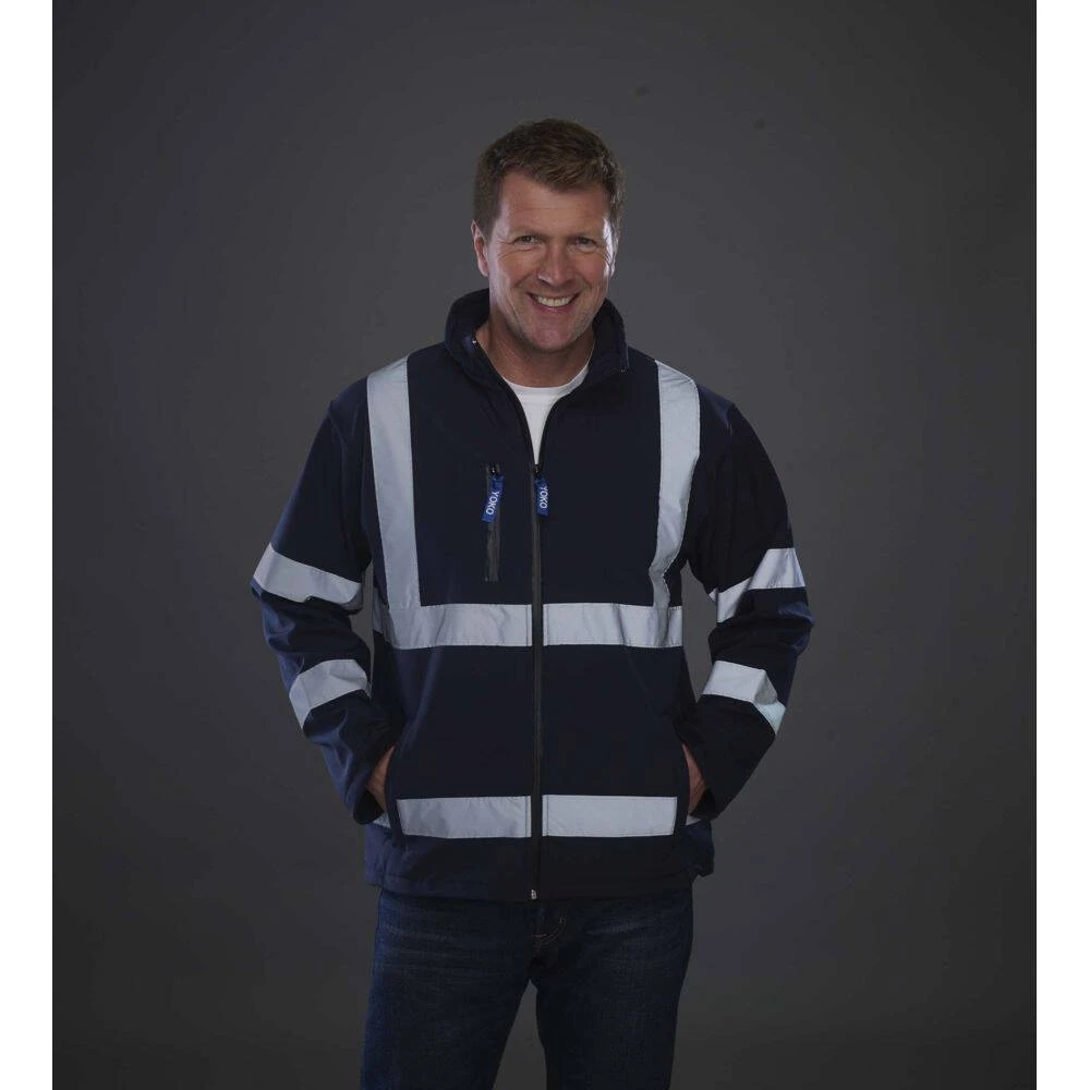 Cette veste softshell haute visibilité Yoko est en 100% polyester, softshell 3 couches, imperméable 8000 mm. L’extérieur est en 100% polyester et l’intérieur en micropolaire. Elle est muni de zips 100 % imperméables, de tirettes avec logo à l’avant et sur la poche poitrine de 2 poches réchauffe-mains zippées, d’un dispositif de réglage des poignets en caoutchouc et cordon de serrage à la taille et d’un dos plus long. Bandes réfléchissantes de 5 cm de large autour du corps et des bras et une sur chaque épaule pour plus de visibilité.